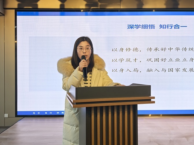 随后,学院思政辅导员魏丽老师为学生干部带来了一堂生动且深刻的党课。魏丽带领学生干部“观古巷:弘扬好中华民族传统美德”、“看新城:推进中国式现代化,科技要打头阵”、“谋未来:发挥多重国家发展战略叠加优势 奋力谱写中国式现代化安徽篇章”,引导他们深学细悟,知行合一:以身修德,传承好中华传统美德、以学筑才,巩固好立业立身之技、以身入局,融入与国家发展大局。