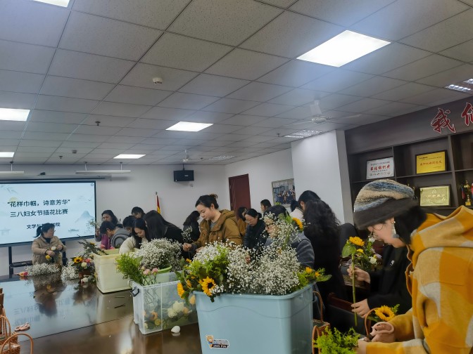 为营造温馨和谐的节日氛围,丰富文学与教育学院女性教职工的精神文化生活,3月5日中午,文学与教育学院工会成功举办三八妇女节“花样巾帼,诗意芳华”插花比赛。