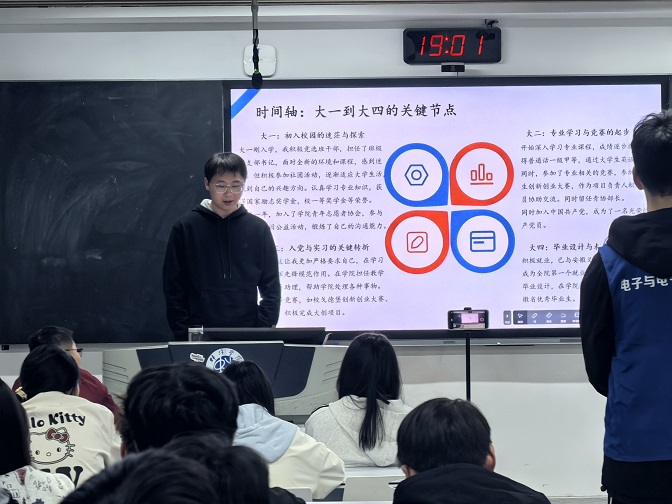 为充分发挥优秀学子的榜样引领作用,助力同学们科学规划大学生活,从学业、社交、职业发展等多维度全方位提升个人能力,电子与电气工程学院于3月21日在C303开展“TA是我的榜样分享会”——薪火相传,经验传承分享会。