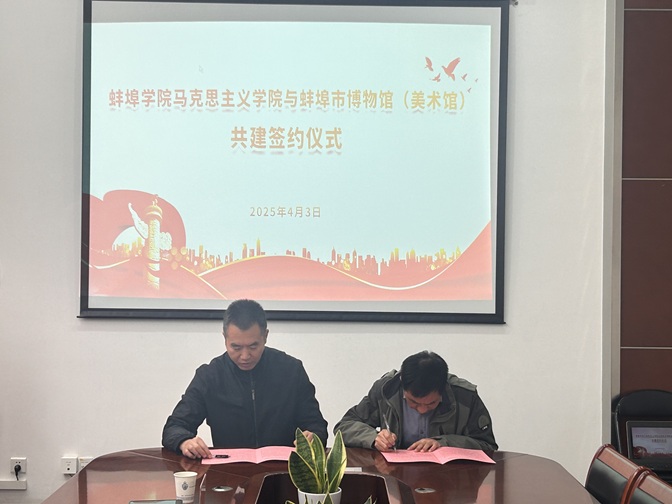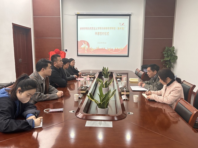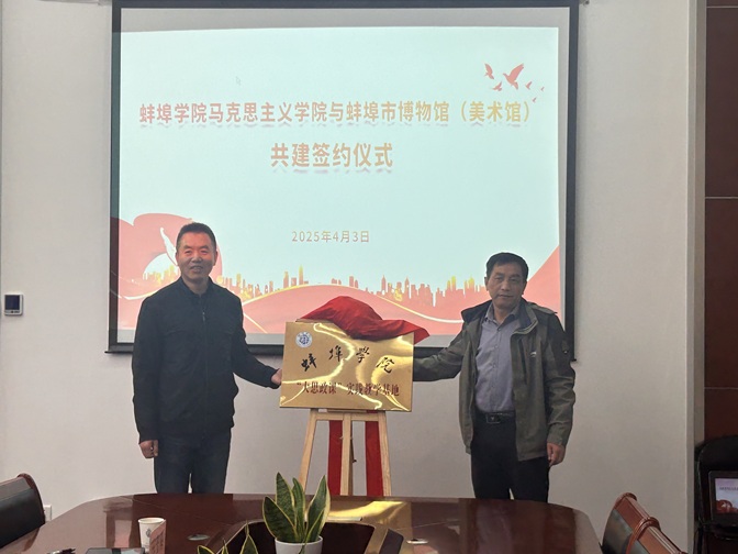 蚌埠市博物馆拥有丰富的藏品资源、多元的展览体系,长期以来在弘扬历史文化、开展社会教育等方面作出了积极贡献,是助力高校思政教育高质量发展的重要平台。会上,双方围绕创新思政教育模式、深化馆校合作展开了深入交流。在对协议内容达成一致的基础上,双方代表正式签署“大思政课”社会实践基地合作协议,并为实践基地揭牌。