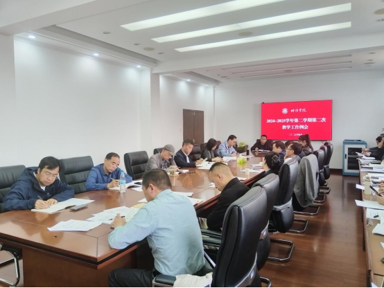 4月8日下午,我校2024-2025学年第二学期第二次教学工作例会在行政楼第二会议室召开。党委委员、副院长张尔桂主持会议并讲话。各二级学院(部)院长、副院长,学生处、教学质量监控办公室、团委、教务处等部门负责人及学校督导组组长等30余人参加会议。会议围绕本科教育教学审核评估推进、教学质量提升及近期重点工作展开部署,旨在进一步统一思想、压实责任,全面推动我校教育教学高质量发展。
