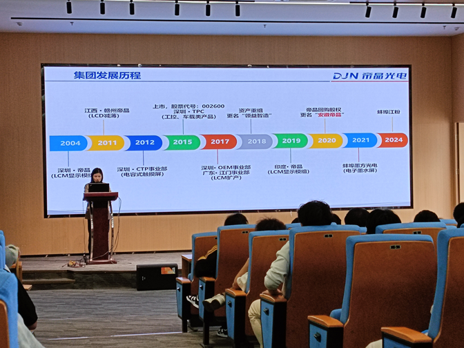 本次认知实习活动前,学院领导与企业进行了多次深入沟通与协调,制定了详细的方案。本次活动受到了企业方的高度重视,首先,在企业报告厅,同学们通过聆听报告,了解企业的发展历史和生产的产品;随后在企业讲解员的带领下,学生们深入企业的生产车间实地参观,在生产车间,现代化的生产设备、高效有序的生产流程和严谨细致的质量管控体系让学生们亲眼目睹了产品从原材料到成品的整个生产过程,深刻感受到了科技与工业的高效融合。最后,大家参观了企业的产品展厅,展厅内,展示了液晶模组生产工艺流程和各种型号的屏幕,特别是电子纸类显示器性能优良,令人印象深刻。