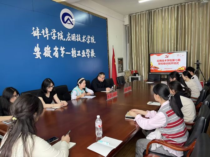 4月11日,应用技术学院第七期党校培训班开班式暨首场党课在信息楼三楼会议室举行。应用技术学院党总支副书记卓家武、党政办副主任钱慧及全体学员参加开班式。开班式由钱慧主持。