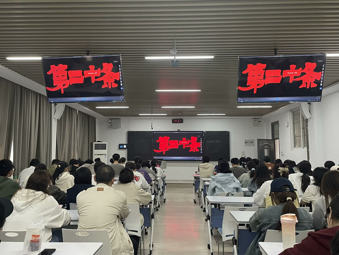为提升学生法律素养,增强维权意识,3月26日下午两点半,由机械与车辆工程学院团总支主办的“维护权益法治同行,共赏佳片权益筑梦”观影活动在教学楼C楼举行,观看影片为《第二十条》。