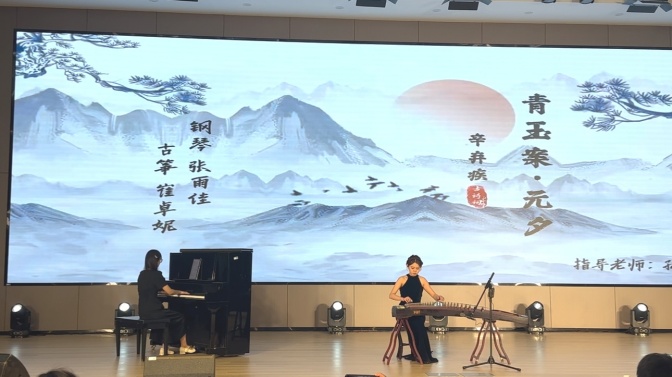 整场演出的节目形式多样,器乐合奏《青玉案·元夕》通过古筝和钢琴,再现中西乐器的完美融合;弹唱《去有风的地方》以吉他、打击乐营造了轻松的氛围;古筝重奏《市集》用古筝技法模拟市集的热闹与欢快,展现传统乐器的表现力。演出的最后,以合唱《最好的未来》作为收尾,动听的旋律和纯净的嗓音表达了学生们对毕业后的憧憬和期待,引发全场共鸣。