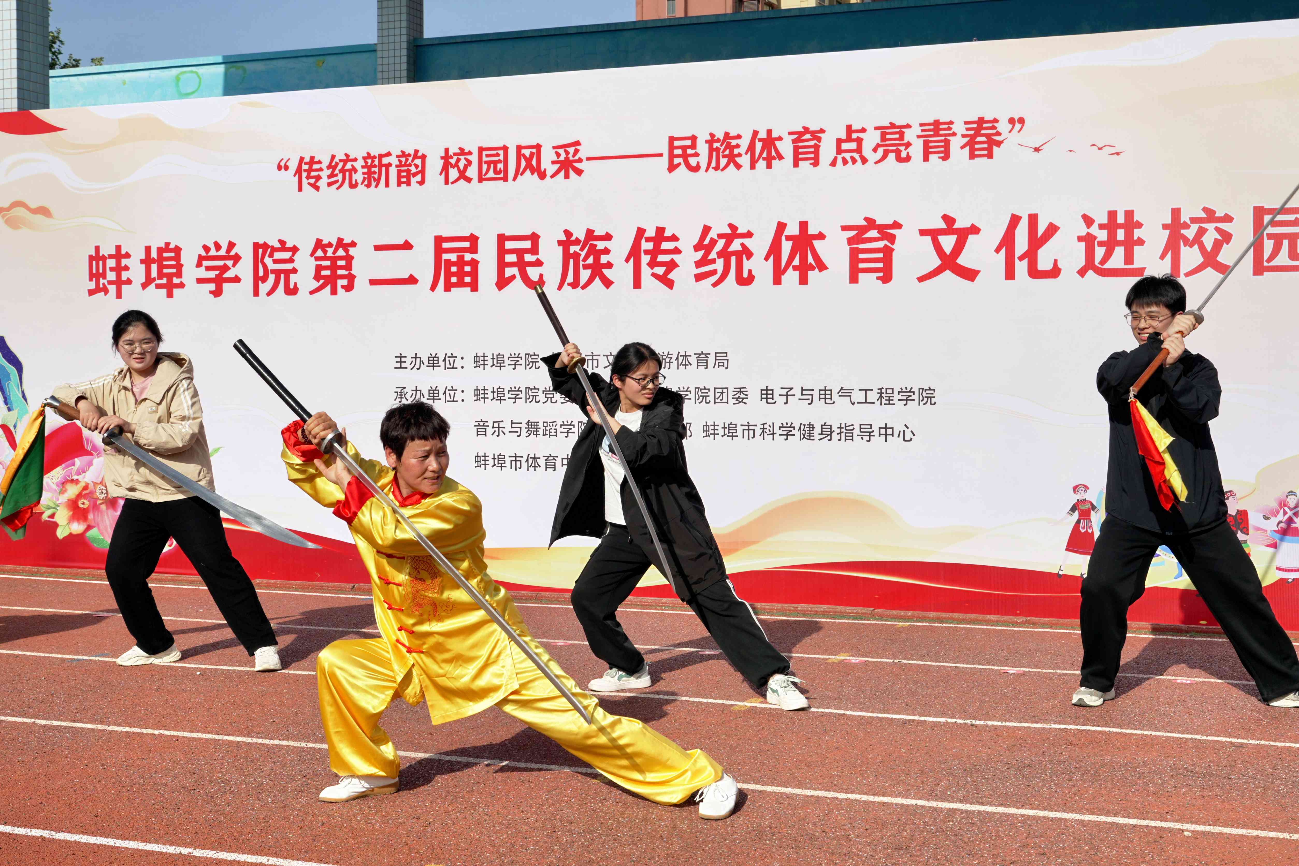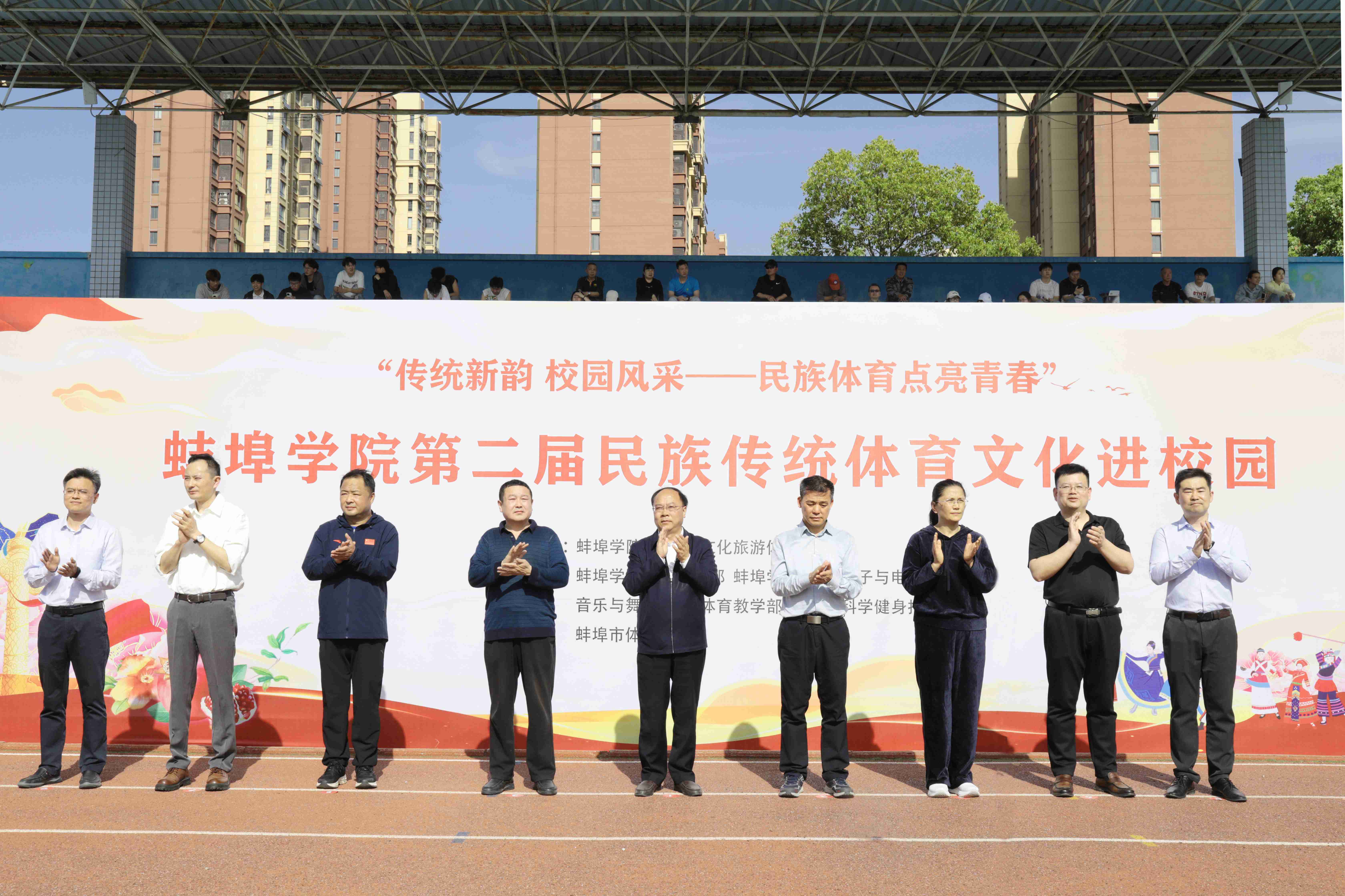 4月16日下午,蚌埠学院北操场成为民族传统体育的舞台,蚌埠学院与蚌埠市文化体育旅游局共同举办的“民族传统体育进校园”活动在此举行,学校党委书记陈国龙出席活动并宣布活动开始,党委委员、副院长张尔桂致辞。学校党政办公室、党委宣传部、体育教学部、音乐与舞蹈学院、电子与电气工程学院等单位、部门主要负责同志;蚌埠市文化旅游体育局群体科、蚌埠市体育中学、蚌埠市科学健身指导中心负责同志出席活动。