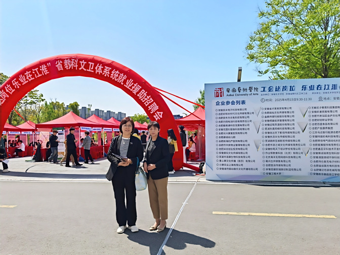 此次“工会送岗位 乐业在江淮”省教科文卫体系统就业援助招聘会由安徽艺术学院联合安徽省教科文卫工会举办,涵盖了教育、科技、文化、传媒等领域69家企事业单位。在招聘会现场,走访组积极与艺朝艺夕教育科技集团有限公司、安徽信达天下影视传媒集团、栖巢集团、安徽新华高级技工学校等多家企业进行深入交流,详细了解企业的基本发展情况、业务范围、招聘需求和流程等,并介绍我院专业特色和毕业生综合能力,且有针对性地推荐我院优秀毕业生。