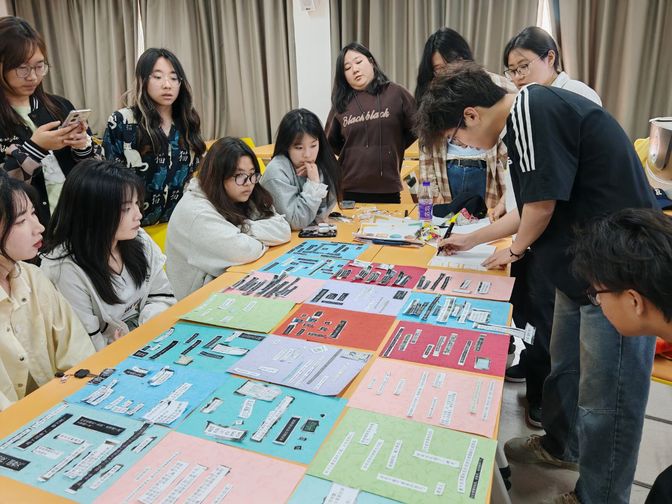在“拼贴诗句创意赛”中,各小组需在十分钟内完成《破茧》《星河共读》等主题创作。成员们围绕古籍残页、新闻剪报等素材展开讨论,将个体阅读感悟编织成集体诗意表达。作品《裂缝中的光》以破碎纸片拼出完整诗句“书页翻动时,孤独自成宇宙”,折射出青年通过阅读与协作对抗精神内耗的成长轨迹。心理健康中心教师曾指出,集体艺术创作既能释放情绪压力,又通过价值共鸣构建心理支持系统,艺术设计学院始终坚持“表达性艺术治疗”在校园场景的创新应用。