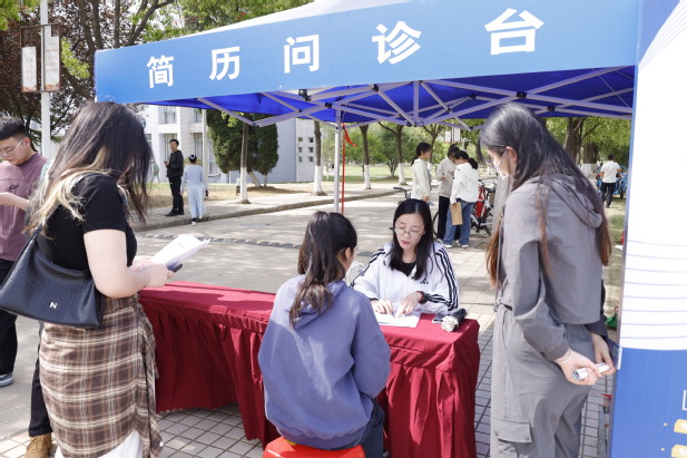 现场气氛热烈,毕业生穿梭在招聘展位前,积极与用人单位沟通,询问与自己专业相关的岗位需求、发展前景以及福利待遇等。现场还特别设置“简历问诊台”服务窗口,由就业指导专家对毕业生简历制作提供有效建议,为毕业生提供精准化指导与个性化服务,吸引大批学生驻足。据统计,毕业生现场共投递简历2717份。