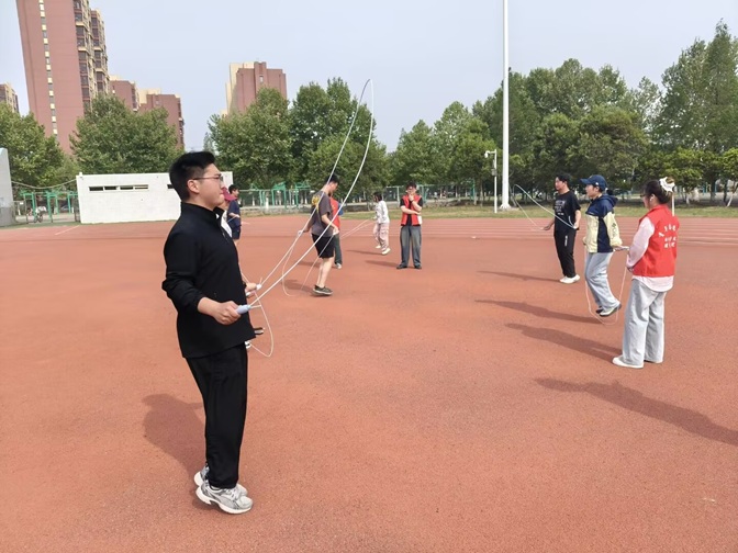 竞赛设置“知识答题”、“雅趣投壶”、“智慧答题”、“活力跳绳”和“终极答题”五大关卡,将知识性与趣味性巧妙融合。其中,“知识答题”、“智慧答题”和“终极答题”,聚焦数学、物理等领域的趣味知识,既考察基础理论掌握度,又考验知识迁移与应用能力。参赛选手沉着应对、机敏思辨,充分展现了扎实的知识储备与逻辑思维能力。“雅趣投壶”和“活力跳绳”环节,则将传统游戏与体能挑战融入竞赛。现场气氛热烈,欢呼声此起彼伏,学生在轻松互动中充分感受到了“数理+体艺”的跨界魅力。