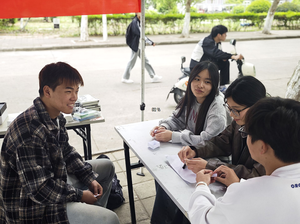 同时,材料与化学工程学院学生会于大学生征兵站前开展环保活动,“绿影猜猜乐”通过对绿色环保相关词语的猜测,展示对环保知识的了解;“绿影辨真局”,在趣味游戏中加深对环保概念的理解;“生态笔迹,书写新章”环节里,同学们围绕环保主题进行书写创作,用文字表达对地球的关爱;“绿色拾光”鼓励师生用镜头捕捉绿色环保瞬间,并通过照片比赛的形式进一步传播环保理念。