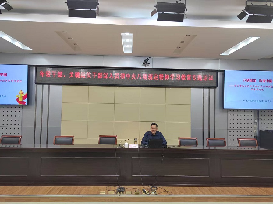4月17日,培训班邀请中共蚌埠市委讲师团团长张雪松开展《八项规定 改变中国》专题辅导,深入解读中央八项规定及其实施细则精神,系统阐释加强党的作风建设的重大意义。授课中,着重强调新提拔干部、年轻干部、关键岗位干部要树立忠心为党、廉政为民思想,以坚定的政治信仰筑牢忠诚之基,坚守廉洁从政抵制不正之风,为参训学员指明思想与行动方向。