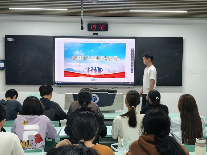 以主题宣传活动为载体弘扬劳动精神。5月5日-11日,学院各年级各班级举办以“美好生活、劳动创造”为主题的劳动教育主题班会。在主题班会中,同学们集中了解《关于全面加强新时代大中小学劳动教育的意见》,并学习学校关于《劳动教育理论与实践》课程的相关文件内容,明确了当代大学生积极参加劳动的重要现实意义。在班会中,各班级组织学生积极学习优秀校友的奋斗事迹,使学院学子从校友事迹中汲取力量,帮助学生树立正确世界观、人生观、价值观,能更好在学习生活中规划个人发展、明确人生意义、勇立时代潮头。