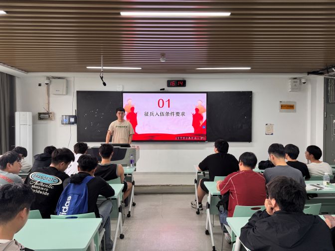 为积极响应国家征兵号召,深入贯彻落实大学生征兵宣传工作,进一步激发学院学子投身军营、报效祖国的热情,电子与电气工程学院于2025年5月12日至5月20日期间,在全院范围内组织开展了以“筑梦军旅,无悔青春”为主题的征兵宣传教育主题班会。