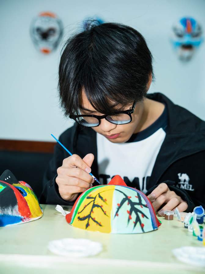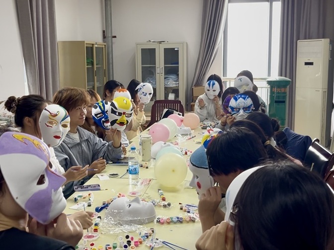 活动现场,同学们充分发挥天马行空的灵感,将内心的情绪与情感倾注于画笔,在脸谱上肆意挥洒。有的同学用明亮的色彩描绘出内心的喜悦与活力;有的同学则通过深沉的色调表达自己近期的压力与困惑;还有同学将多种色彩巧妙融合,展现复杂多变的情绪状态。大家沉浸在创作中,原本空白的脸谱渐渐被赋予了独特的情感与个性,成为了独属于每个人情绪的“自画像”,表达着“喜”、“怒”、“哀”、“乐”的情绪状态,整个彩绘过程完成了一次压力的释放和心灵的探索。