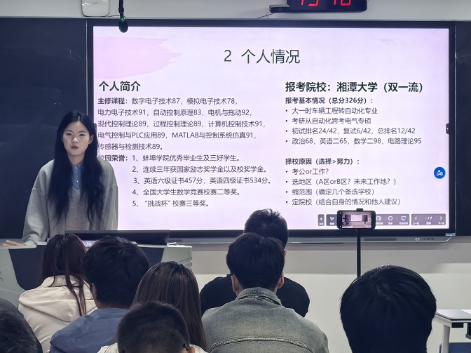为助力学生锚定考研目标,优化备考策略,电子与电气工程学院于5月23日晚在C301教室举办“TA是我的榜样”系列分享会第37期——研途领航专场。活动聚焦考研全流程攻坚,通过高分学子的实战经验为备考学子提供精准赋能。