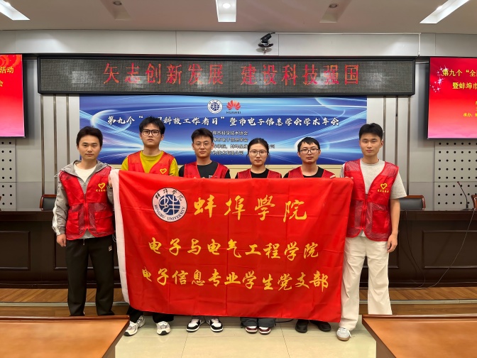 2025年5月25日,蚌埠市第九个“全国科技工作者日” 活动暨学术年会在蚌埠学院举行,电子与电气工程学院电子信息专业学生党支部学生党员代表前往参观学习并开展志愿服务。