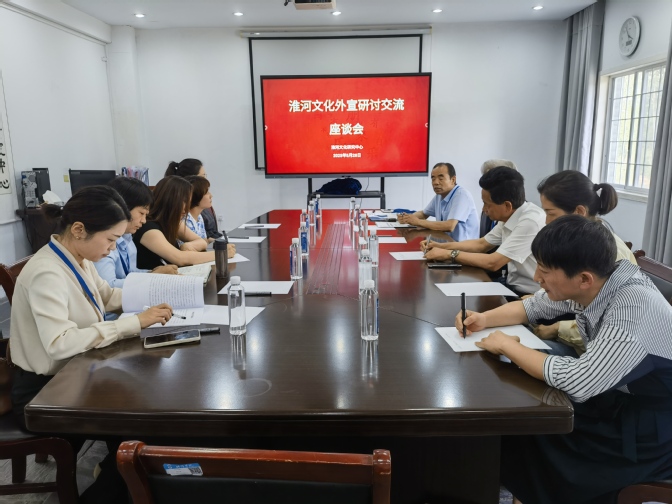 淮河文化外宣研究论坛在我校淮河文化研究中心同步开展,蚌埠市商务和外事局、博物馆、禹启文化研究协会等单位的领导和专家与淮河文化研究中心研究人员和外国语学院科研团队成员围绕徽文化、淮河文化研究、翻译、传播等展开讨论,共同探讨讲好新时代淮河文化故事的新途径。