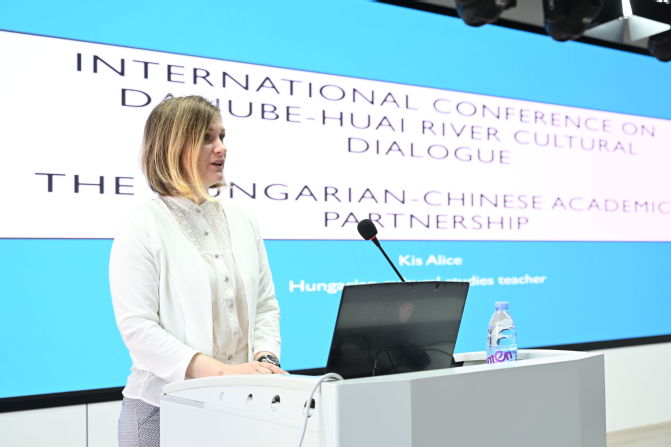 为深化区域国别研究,促进中匈文化交流,由蚌埠学院外国语学院、淮河文化研究中心联合主办的“多瑙河—淮河文化对话:中匈跨文化国际会议”于5月28日在我校隆重举行。来自匈牙利及安徽省内外专家学者、蚌埠商务和外事局、博物馆、禹启文化研究协会等单位的领导和研究人员、外国语学院教师及学生代表200余人齐聚一堂,围绕淮河文明溯源、中匈关系发展、跨文化对比研究等议题展开深入研讨。