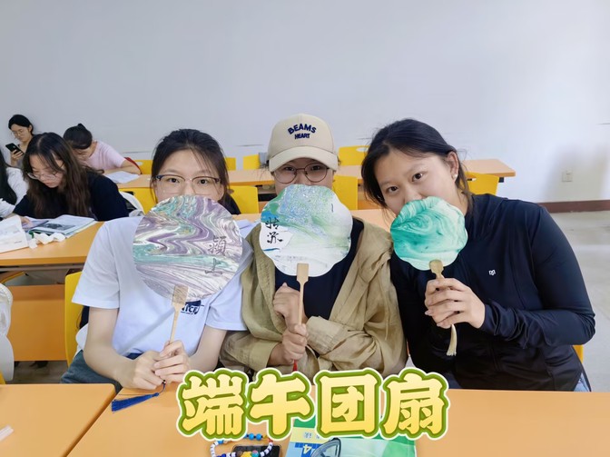 一笔一画,皆是端午情长。24级团支书翁瑾向同学们讲解了古代民间端午节互相赠送扇子的习俗,寓意“一扇解千愁”,让同学们了解更多的端午历史底蕴和文化内涵。随后,同学们学习了绘扇的操作方法,将自己对传统文化的感悟付诸笔端,在一柄柄典雅古朴的团扇上,用清新亮丽的色彩用心绘制外院学子对传统文化、中华瑰宝的热爱。经过上色的彩扇样式精美,充满古色风韵,让同学们爱不释手。制作结束后,大家向同伴分享各自的作品并合影留念。