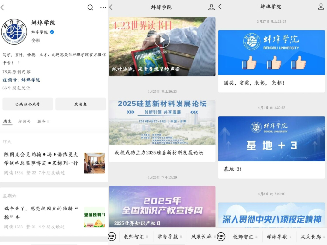 坚持正确政治方向和舆论导向,围绕中心、服务大局,深入推进媒体融合发展,在讲好“蚌院故事”上下深功夫,努力让主旋律有高频率、正能量有大流量,为学校发展提供强有力的思想舆论保障。主题报道走深走心。围绕学习宣传贯彻党的二十大精神、学习贯彻习近平新时代中国特色社会主义思想主题教育、学习贯彻习近平总书记考察安徽重要讲话精神等重大主题,开设“学习进行时”“学习教育”“牢记嘱托 感恩奋进”“学习贯彻党的二十届三中全会精神”等专题专栏,推出一批有高度、接地气、暖人心的新闻报道,形成强大宣传声势,营造奋发进取的浓厚氛围。媒体融合出新出彩。成立蚌埠学院新媒体联盟,开通官方微信视频号,构建立体式、全景化的传播矩阵,聚焦学校改革发展大事要事,深入教学科研实践一线,精心采写、大力宣传学校发展成果、师生典型事迹,社区宣讲党的二十大精神获《中国教育报》头版报道,思政辅导员制探索经验被《中国青年报》深度报道,《入海》等短视频被《学习强国》全国平台采用,学校社会影响力、美誉度日益提升。舆论引导有力有效。对校内各媒体实施统一管理,做到信息发布联动、文化形象联展、舆情热点联对、知识产权联享、工作队伍联训之“五联”,严格落实信息发布“三审三校”制度,坚决杜绝错误或负面信息,确保新闻报道真实、全面、客观、公正。
