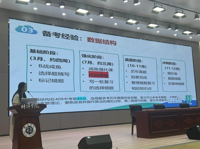 为帮助2026届考研学子明确备考方向、掌握备考技巧,6月6日下午,计算机与信息工程学院在学校学术报告厅举办2025届考研经验分享会。分享会由辅导员崔婉君主持,学院2026届全体辅导员参会,26届100余名有考研意向的学生参与活动。