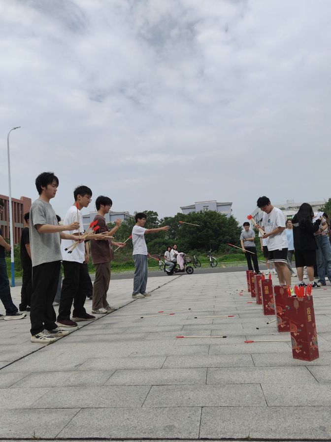 运动会分为个人赛与团队赛两大板块,兼顾趣味性与挑战性。个人赛中,“投壶”项目以传统技艺融合现代创意,考验专注力与耐心;“指压板跳绳”在“痛并快乐着”的体验中激发斗志;“企鹅漫步”则要求选手夹气球平衡前行,滑稽动作引发阵阵笑声,现场氛围轻松热烈。