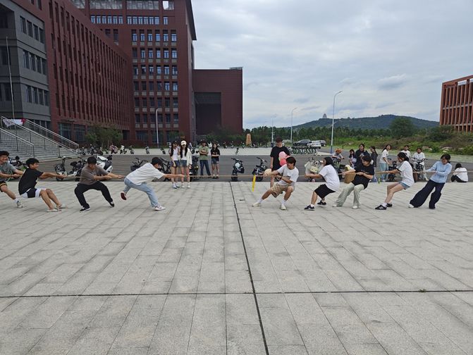 团队赛更是将活动推向高潮。“你画我猜”环节,队员们用夸张的肢体语言传递信息,默契配合笑料频出;“三人四足”和“拔河”比赛则强调协作与信任,参赛者紧握绳索、口号铿锵,围观同学的呐喊助威声此起彼伏。视觉传达专业2024级学生李表示:“在比赛中忘记了课业的压力,和队友一起拼搏的感觉特别畅快!”