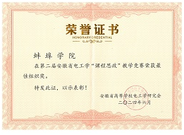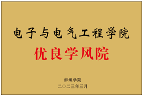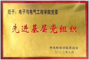 2. 强化思政育人。学院全面推进课程思政建设,修订课程教学大纲,组织教学竞赛,2024年斩获安徽省电工学课程思政教学案例竞赛一等奖1项、二等奖3项,学校获评“最佳组织奖”,实现知识传授与价值引领有机统一。近三年,学院党委获评蚌埠学院“标杆院系”“先进基层党组织”,连续三年在党建述职评议考核中获“好”等次;电子信息专业学生党支部入选校级“样板支部”“三星党支部”;学院团总支连续两年荣获校“五四红旗团总支”。