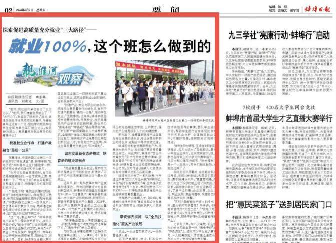 2. 服务地方发展。学院精准对接蚌埠市产业战略,每年向中国兵器工业第二一四研究所、国显科技等本地龙头企业输送毕业生,2024届“微电子班”38人实现100%留蚌就业,100%任职于集成电路设计、封装测试等关键技术岗位,服务地方新兴产业发展。积极开展“教授博士企业行”,选派省级科技副总3人、双链融合专员2人,深入企业参与产业规划与技术创新,有力支撑区域产业升级。