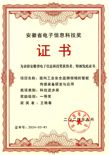2. 科研成果丰硕。近年来,教师主持国家级、省级科研项目15项,产学研合作项目55项,发表学术论文100余篇,授权专利70余项,参与制定国家标准、团体标准3项。“面向工业安全检测领域的智能传感装备研究与应用”和“新一代移动通信协议测试关键技术及产业化应用”2个项目均荣获安徽省电子信息科技进步奖一等奖。“基于光学传感技术的燃烧效能在线评测与智能优化调控系统”项目荣获中国光学工程学会科技进步奖二等奖。“BSQ-DG型数字式变送器”等3项科研成果入选安徽省庆祝改革开放40周年科技创新成果展展品、安徽创新馆展品。“新能源汽车换电站车身及电池重量检测传感器”等2项成果亮相第三届中国(安徽)高校科技成果交易会。“隔离信号变送器”研发成果已成为蔚来汽车换电站的核心标配设备,成功应用于全国3000多座换电站。