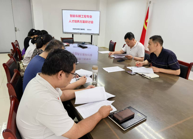 2025年6月17日,机械与车辆工程学院在学院会议室召开智能车辆工程新专业人才培养方案制定专题研讨会。会议由学院副院长陈兴强主持,院长魏天路、材料成型及控制工程专业负责人丁国华、机械设计制造及其自动化专业负责人杨海、智能车辆工程专业负责人王琳、教学秘书范恒亮及智能车辆工程专业全体教师参加会议。
