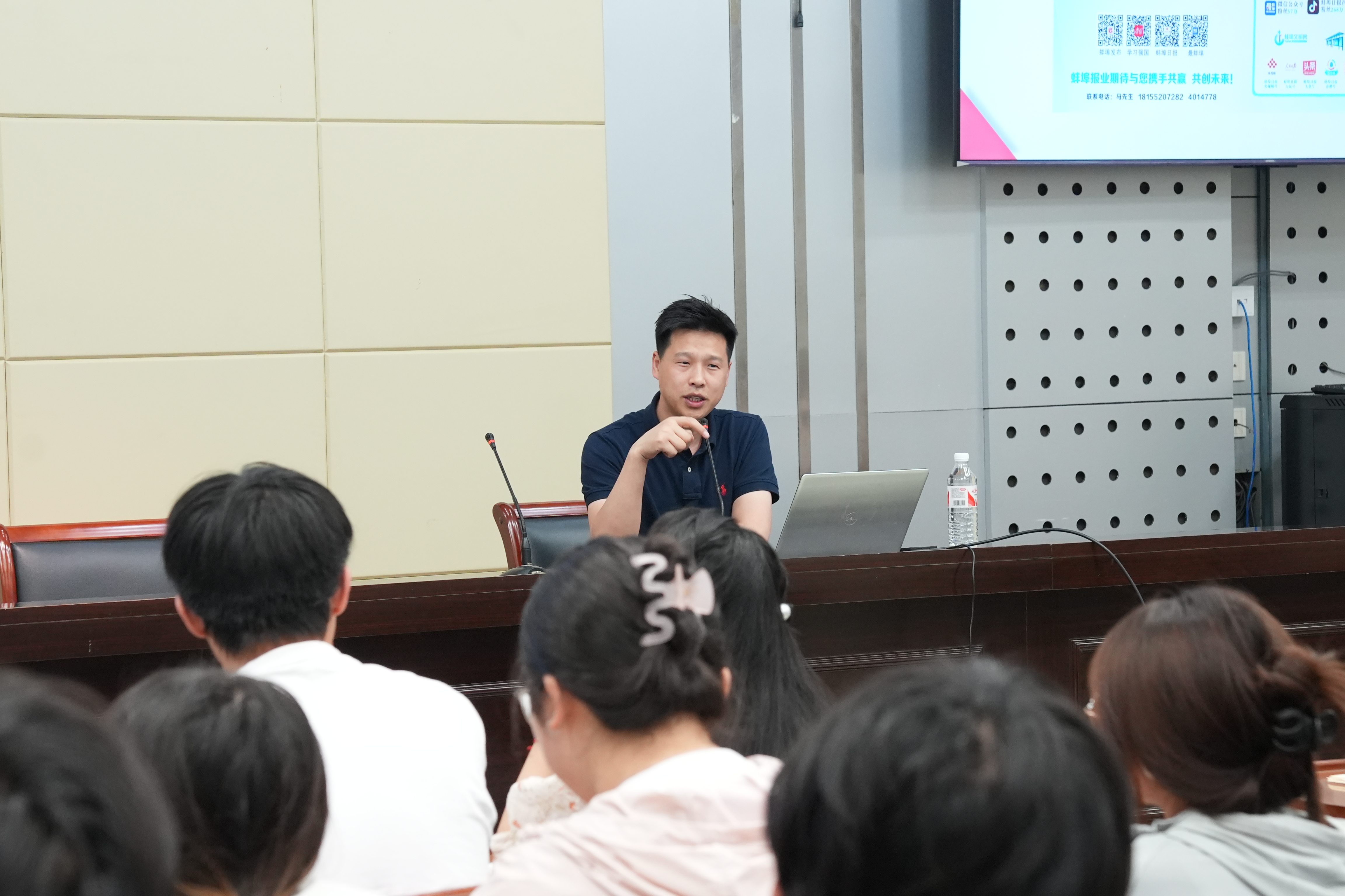 为持续推进深入贯彻中央八项规定精神学习教育走深走实,扎实开展“我为群众办实事”实践活动,学校紧扣师生新媒体宣传实际需求,聚焦帮助新媒体爱好者提升技能、增强本领,扩大学校正面宣传声势,讲好学校高质量发展故事,6月18日,蚌埠学院邀请蚌埠日报社新媒体开发部李博主任来校开展淮畔融媒大讲堂第九期——“短视频新闻采编讲座”。学校新媒体平台学生骨干、全校新媒体宣传爱好者120余人聆听讲座。