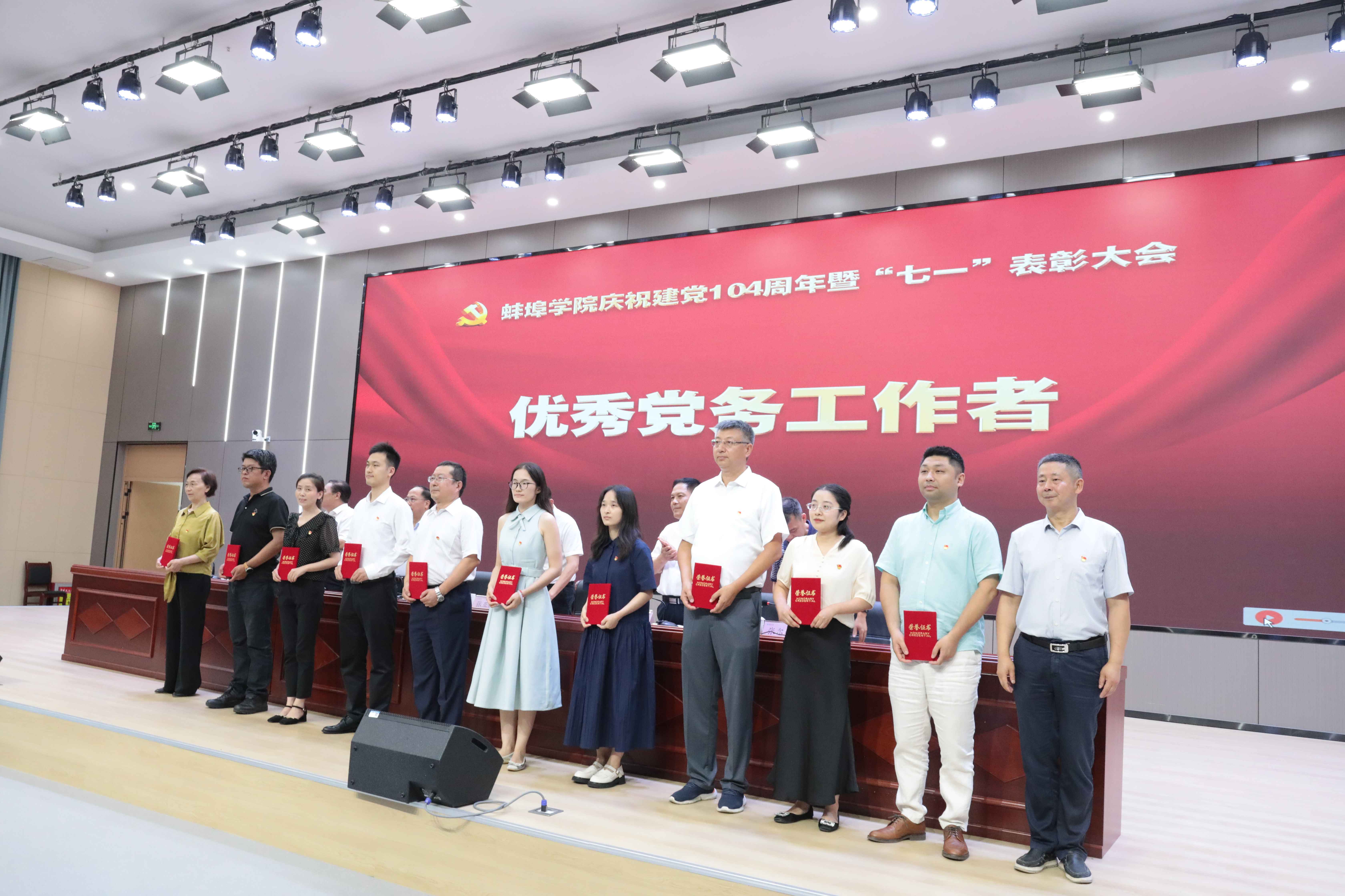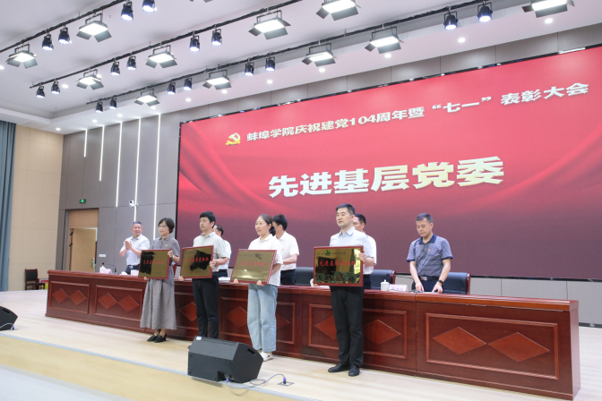 7月1日下午,蚌埠学院隆重举行庆祝中国共产党成立104周年暨“七一”表彰大会。学校党政领导班子成员、各二级单位党政负责人、党支部书记、专职党务工作者、受表彰代表及党员代表参会,大会由党委副书记、院长张亚新主持。