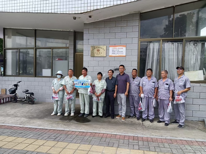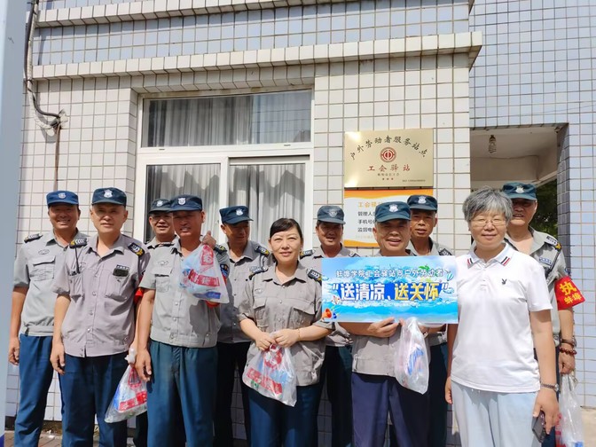 近日,持续攀升的高温天气给户外劳动者带来了严峻考验,他们不畏炎热用汗水为美好校园建设默默奉献。7月9日,蚌埠学院工会驿站开展“送清凉 送关怀”活动,为坚守在岗位上的学校保安、环卫工人等户外劳动者送去了夏日的清凉与关怀。