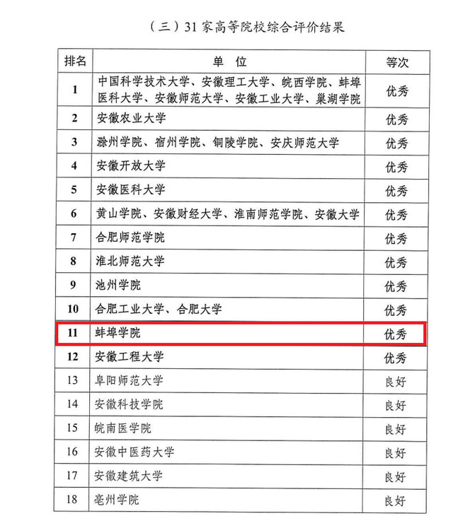 此次荣获“优秀”等次,是对学校过去一年帮扶工作的肯定,更是对未来工作的激励。蚌埠学院将以此次考核为契机,进一步总结经验、巩固成果,持续深化校地合作,聚焦乡村振兴重点任务,不断创新帮扶模式、提升帮扶实效,为安徽全面推进乡村振兴、加快农业农村现代化贡献更多地方应用型高校的力量。(撰稿:陈立松;编辑:毛星懿;审核:徐燕、黄灿)