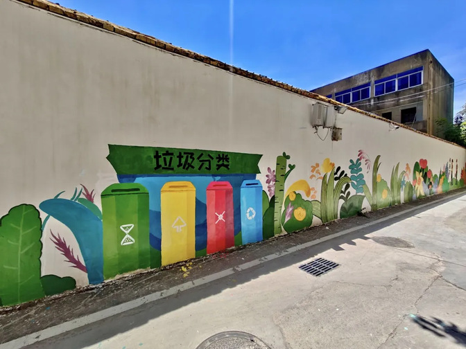 从构思到落笔,学子们始终以“接地气、有温度”为准则,将居民的生活记忆与社区特色融入画中。向日葵志愿者的忙碌身影、垃圾分类的生动场景……每一笔都凝聚着集体智慧,让文化墙不仅是艺术作品,更成为居民共同参与的“情感载体”。