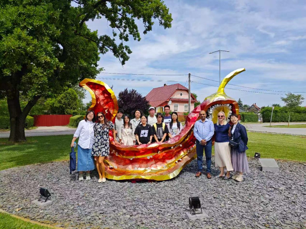研学期间,师生们参观凯奇凯梅特市政大厅,了解城市发展、治理理念和公共管理模式;走访当地多家企业,包括工业创新中心的钢铁制造企业和Univer集团的食品加工厂等特色产业,了解地方特色产业;在精品咖啡工坊,学习制作特色咖啡、品尝酸面包,了解食品工业;还参观了雕塑展、体验品酒文化、参与密室解谜游戏;在洛基泰萊克村体验匈牙利传统牧羊生活、领略欧洲草原风光;在凯奇凯梅特湖畔与匈方师生共划龙舟,体验了这项中匈两国人民同样青睐的水上运动。