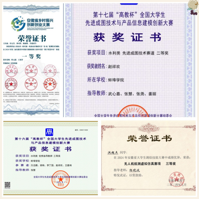 学院以智固本,提智育人,积极组织学生参加各类学科竞赛和创新创业活动,构建“以赛促学、以赛促创、以赛促用”育人模式,形成覆盖“校级省级国家级”的三级竞赛培育机制,实现人才培养质量跨越式提升。近年来,学科竞赛取得国家级奖项12项、省级奖项72项,大学生创新创业训练项目立项国家级28项、省级50项。鼓励引导和组织师生积极参加各类学术含量较高的竞赛,强化竞赛的统筹与组织,在“高教杯”全国大学生先进成图技术与产品信息建模创新大赛、“挑战杯·华安证券”安徽省大学生课外学术科技作品竞赛、大学生节能减排社会实践与科技竞赛、安徽省乡村振兴创新创业大赛等赛事中,学生团队屡创佳绩、硕果累累,充分展示了学院在智育培养方面的显著成效。