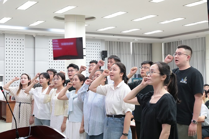 8月25日下午,我校在行政楼视频会议室举行2025年辅导员暑期集中培训班开班暨新聘辅导员入职宣誓仪式。校党委书记陈国龙出席仪式并讲话,校党委副书记韦文联主持会议。各二级学院党委书记、副书记,全体专职辅导员以及党委学生工作部全体工作人员参加仪式。