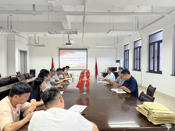 会上学习了《新时代高校教师职业行为十项准则》等教育法律法规与政策文件,学院纪委领学了违反高校教师职业行为十项准则典型案例。