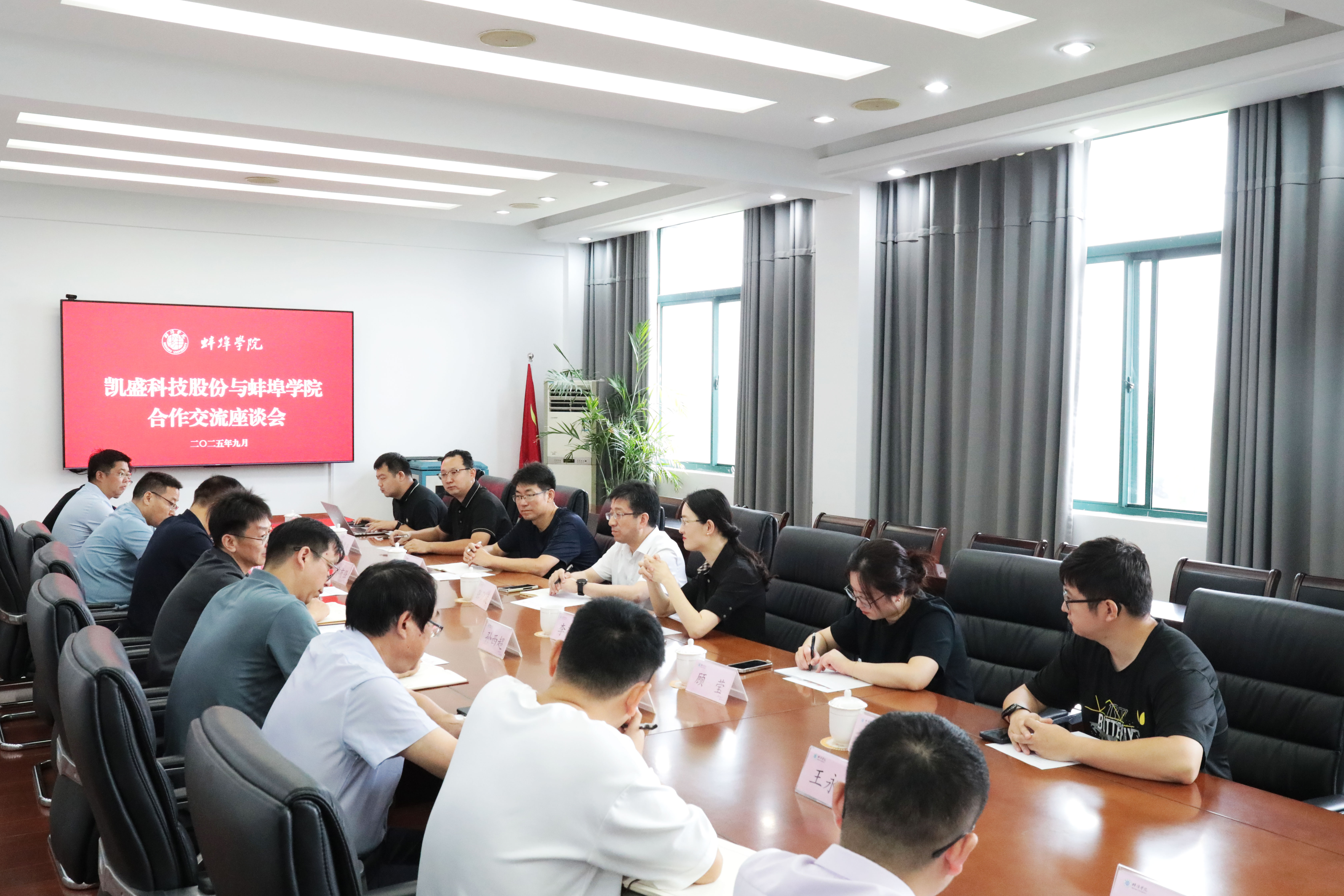 为进一步推动校企合作机制化、实效化,9月2日上午,凯盛科技股份有限公司与蚌埠学院合作交流座谈会在蚌埠学院行政楼第二会议室举行,双方围绕产学研协同创新、人才共享、科研合作等议题展开深入交流。蚌埠学院党委副书记、校长张亚新,党委委员、副校长郭有强,凯盛科技股份有限公司党委副书记李蓓蓓,副总经理张少波,安徽凯盛应用材料有限公司副总经理张昂出席会议。科研处、材料与化学工程学院负责人,青年博士代表及企业相关管理人员、技术人员参加会议。