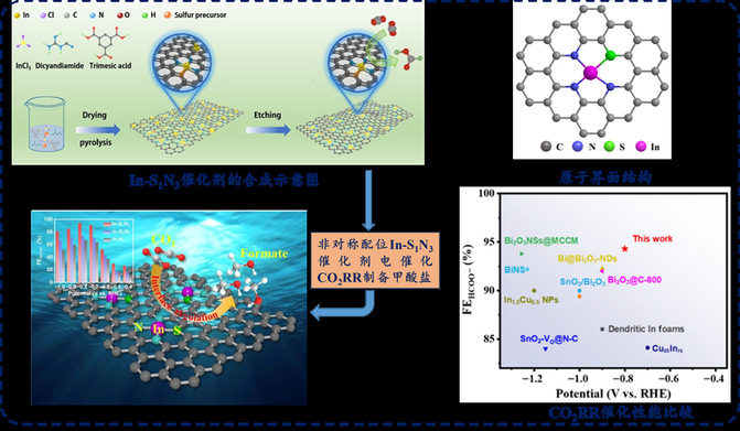 高燕采用简单的湿化学和热解相结合的方法开发了一种具有电荷非对称活性位点的In簇催化剂,在非对称铟簇催化剂In Clu/C的开发中取得进展。该研究成果以“Nitrogen-Free Charge-Asymmetric Indium Cluster Catalyst for Efficient CO2 Electroreduction to Formate”为题发表于Nano Research上。