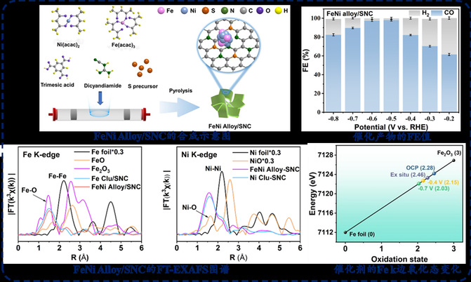 在非对称纳米合金催化剂FeNi Alloy/SNC的开发中,高燕提出在氮掺杂碳纳米片上负载硫掺杂的铁镍双金属位纳米合金催化剂(FeNi Alloy/SNC)的制备方法,为未来清洁能源结构的转化和利用提供了一种新的材料选择。该研究成果以“Sulfur modified charge-asymmetry FeNi nanoalloy catalyst anchored on N-doped carbon nanosheets for efficient electrochemical CO2 reduction”为题发表于Nanoscale上。 (撰稿:高燕;编辑:李海燕、毛星懿;审核:张敏、黄灿)