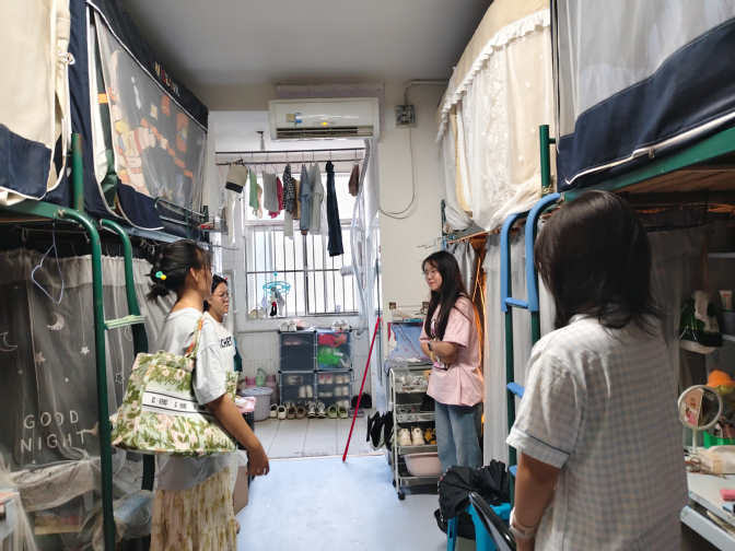 走访期间,周颖和辅导员与同学们亲切交流,对于毕业班学生,细致询问大家的就业意向。同时,对于计划就业的同学,结合英语专业的就业形势,为大家分析了不同职业方向的发展前景,鼓励大家积极投递简历、参加招聘会,并提醒同学们在求职过程中要注意防范就业陷阱。对于有考研或考公计划的同学,嘱咐大家要坚定目标,合理规划复习时间,遇到困难及时与老师、同学沟通。