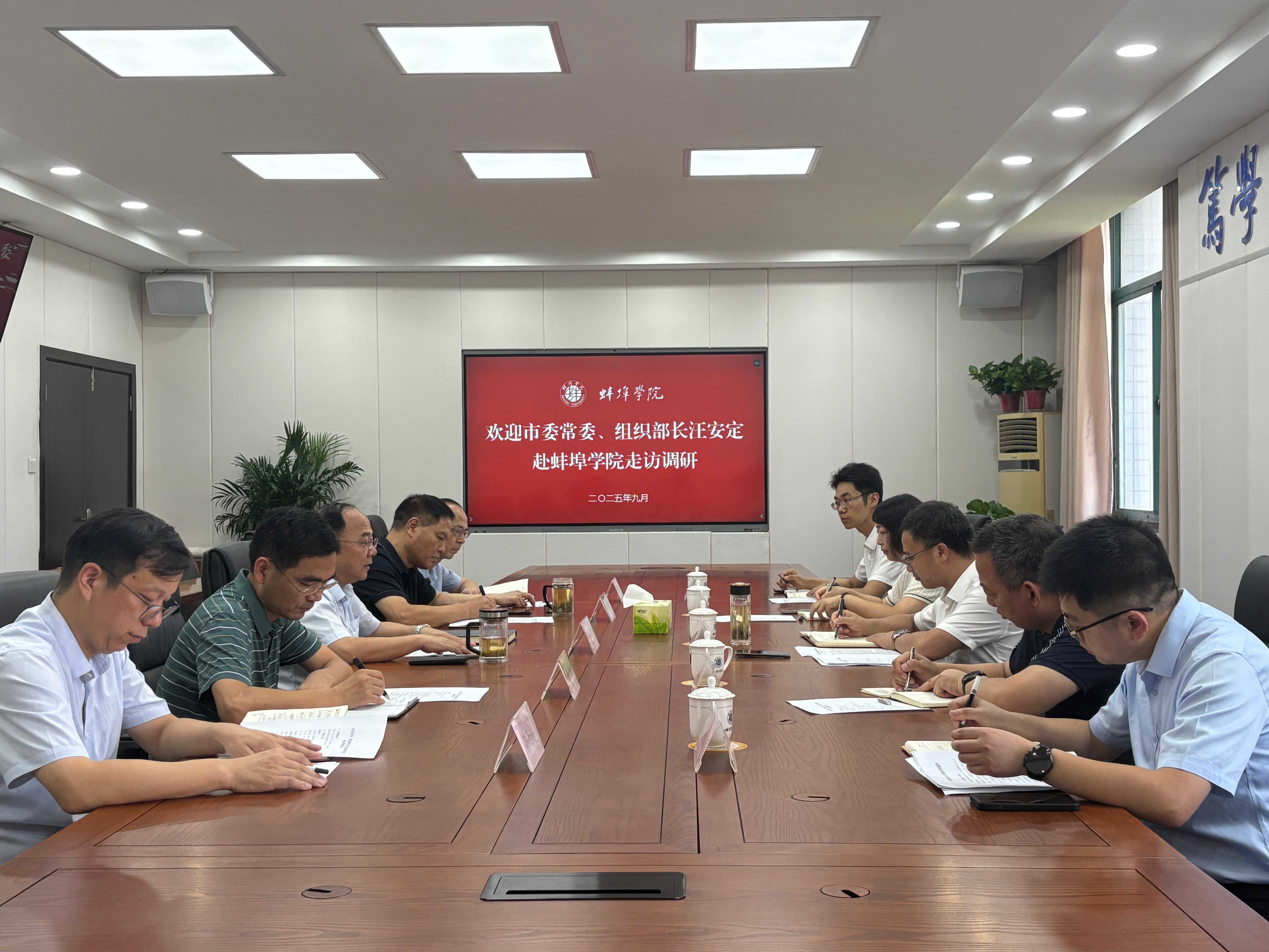 9月4日上午,蚌埠市委常委、组织部部长汪安定一行来我校调研了解学校整体情况及人才队伍建设、科技成果转化等方面发展情况。校党委书记陈国龙,党委委员、副校长郭有强,组织部、人事处、科研处负责人参加座谈交流。