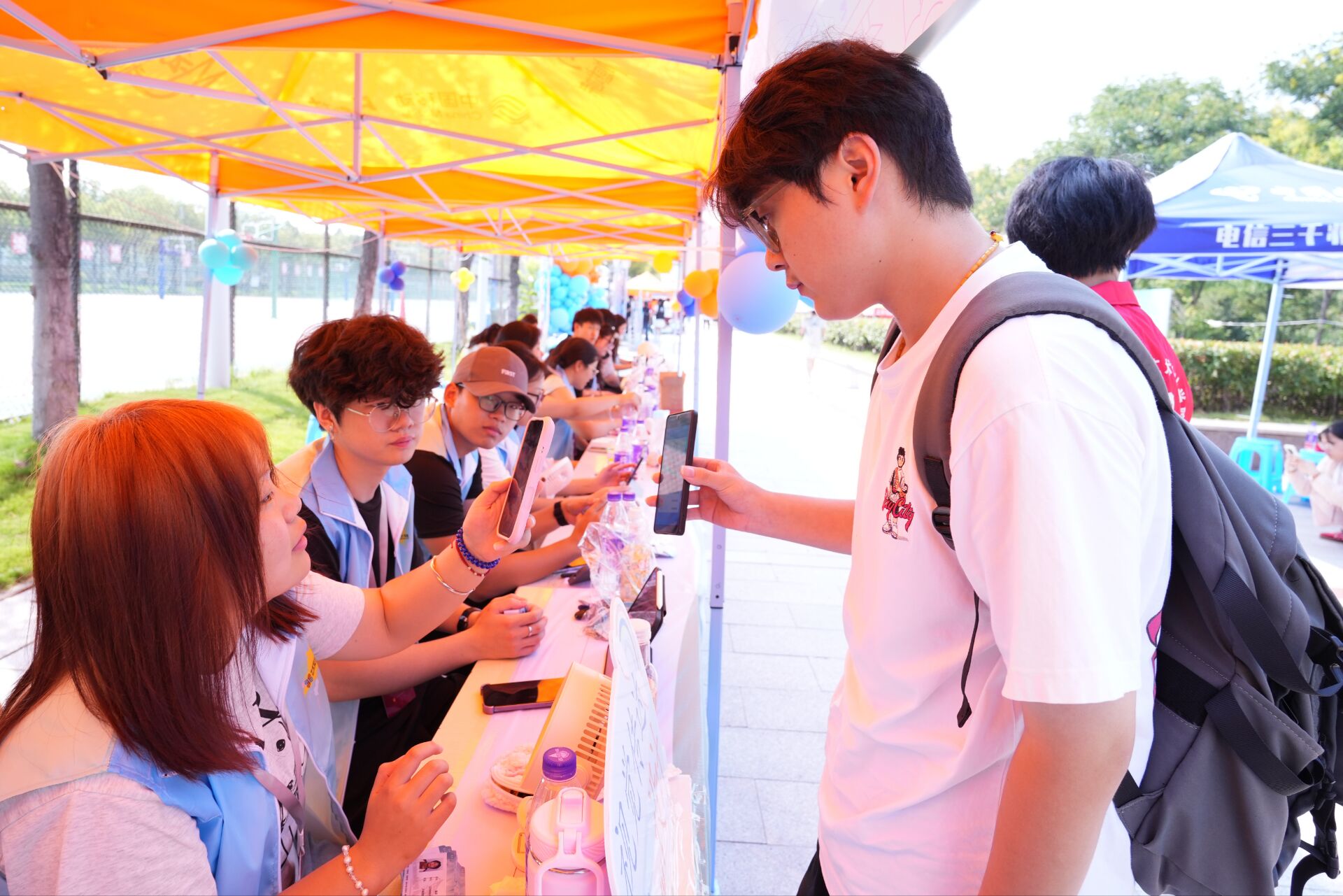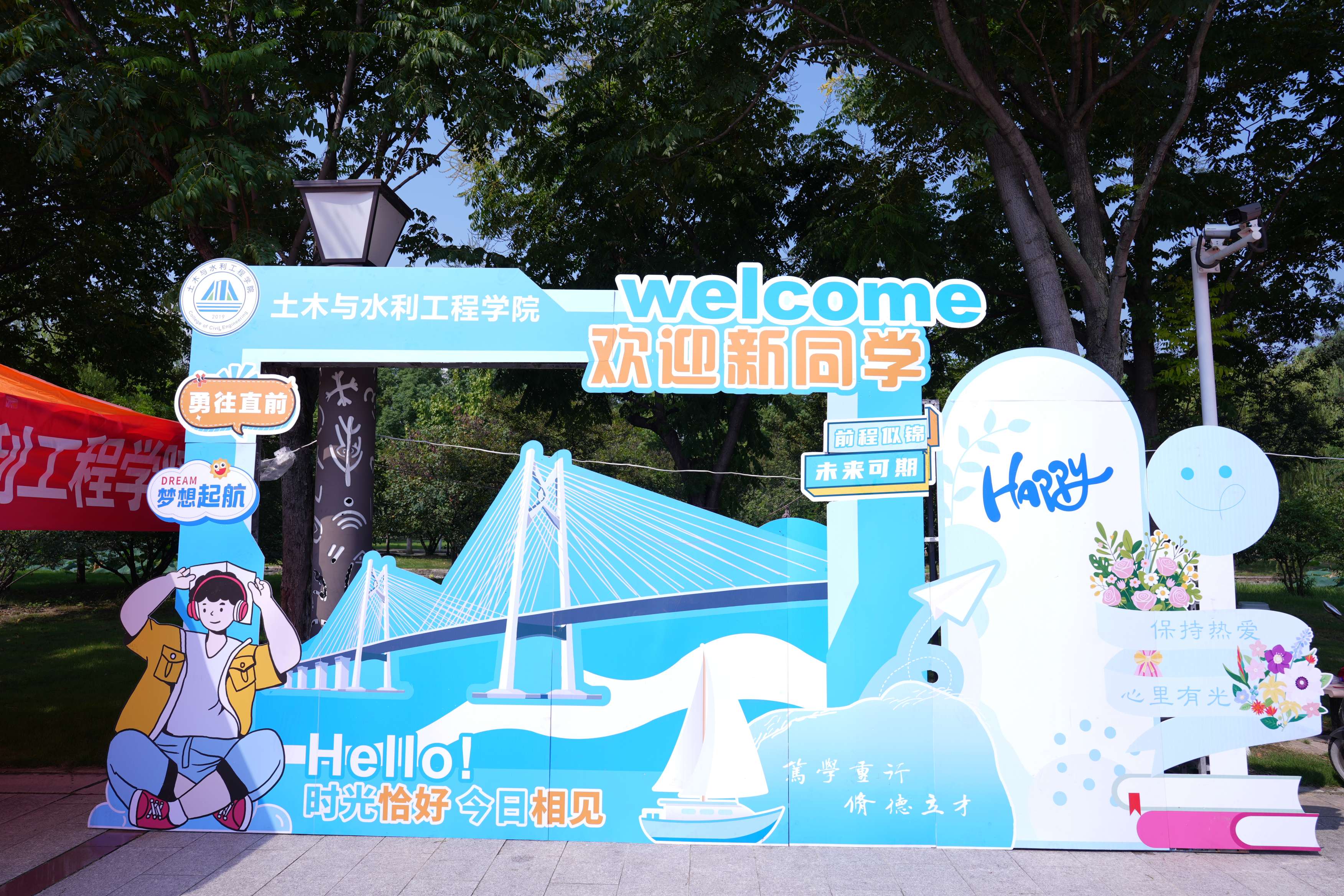 各学院结合专业特色打造的迎新展台,成了校园里的“人气打卡地”。机械与车辆工程学院展台前,两台小型3D打印机正“滋滋”运作,学生们自己打印的精致机械模型让新生直呼有趣。电子与电气工程学院用电路板造型装饰画、闪烁的电子元件模型装点展板,展现电路与电气的奇妙。食品与生物工程学院将具有学科的特色编制手串送给新生,满是温暖。计算机与信息工程学院展台被流淌代码图案的灯带环绕,搭配编程作品展示板,材料与化学工程学院的展台上有序排列着材料样本与微型化学实验装置模型,都是科技感满满。土木与水利工程学院的考研光荣榜前,学长学姐现场分享备考心得,点燃新生热情。数理学院的展台上,立体几何模型、趣味公式海报错落摆放,学术氛围浓厚。
