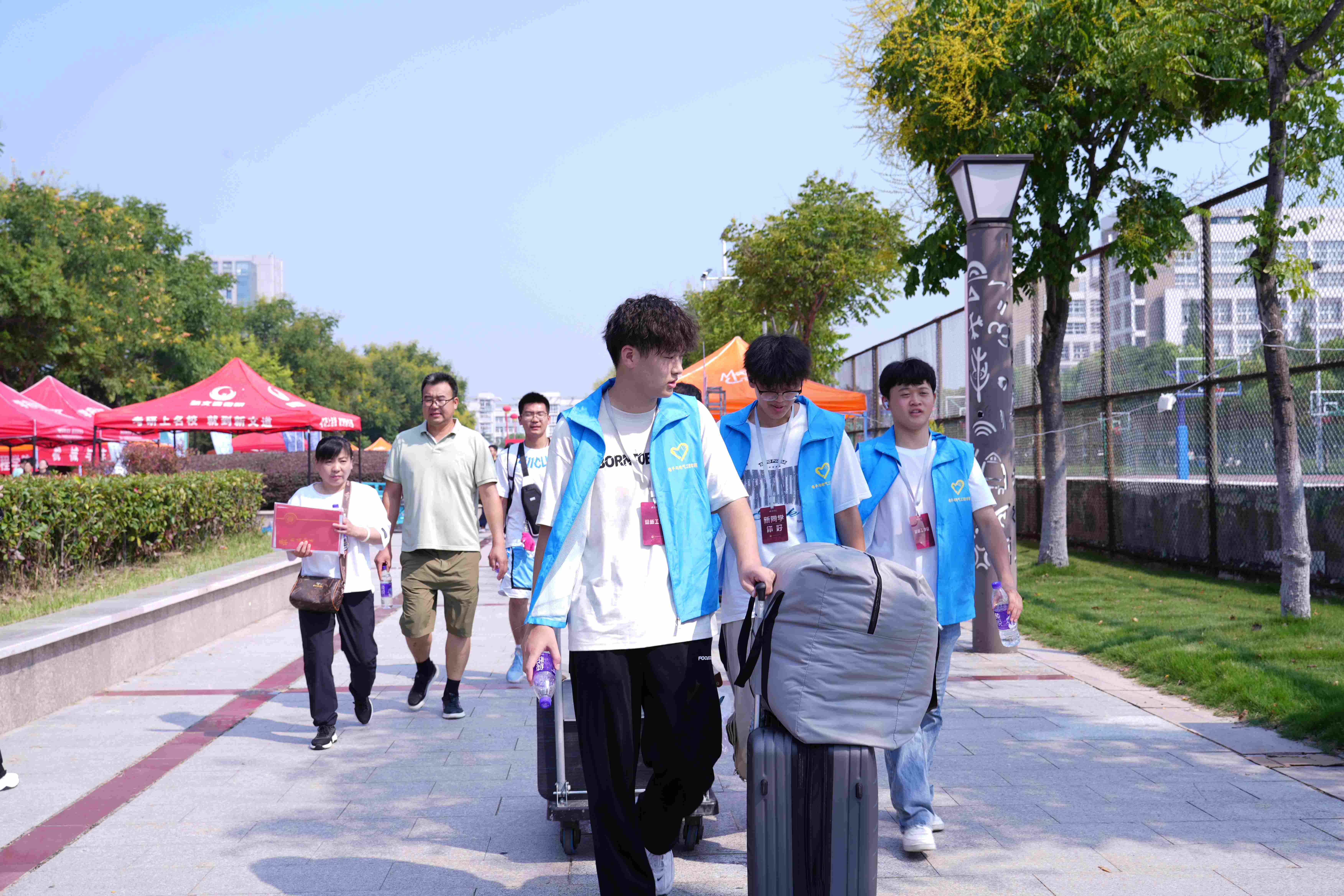 “从哪里来的?路上还顺利吗?”“对学校的第一印象怎么样?”校领导们穿行在迎新广场的人群中,细心询问着行程是否顺利、报到是否便捷,让新生和家长感受到家一般的温暖。