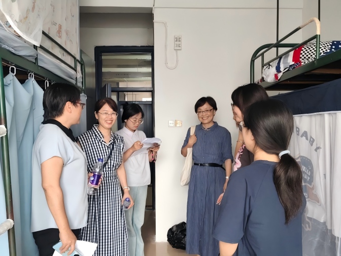 9月6日下午,经济与管理学院党委书记赵睿、副院长陈荣、党委副书记夏晓燕及2025级辅导员一行深入新生宿舍,看望刚刚入住的2025级新同学,实地了解新生住宿和生活情况,了解新生入学情况,与新生们亲切交流,助力新生尽快融入经管大家庭。