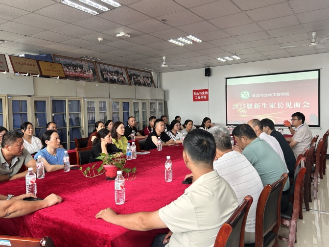 为搭建家校沟通的桥梁,增进新生家长对学校的了解,凝聚育人合力,助力2025级新生尽快适应大学学习生活,2025年9月6日上午,食品与生物工程学院在F楼1214会议室召开2025级新生家长会。学院党委书记王永斌、副院长马龙出席会议。会议由学院党委副书记伍亚华主持。